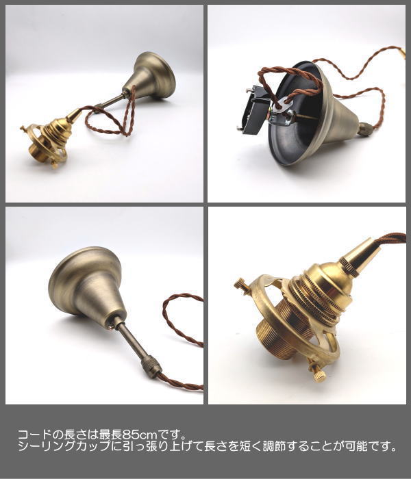 シーリングカップに引っ張り上げて長さを短く調節することが可能です。