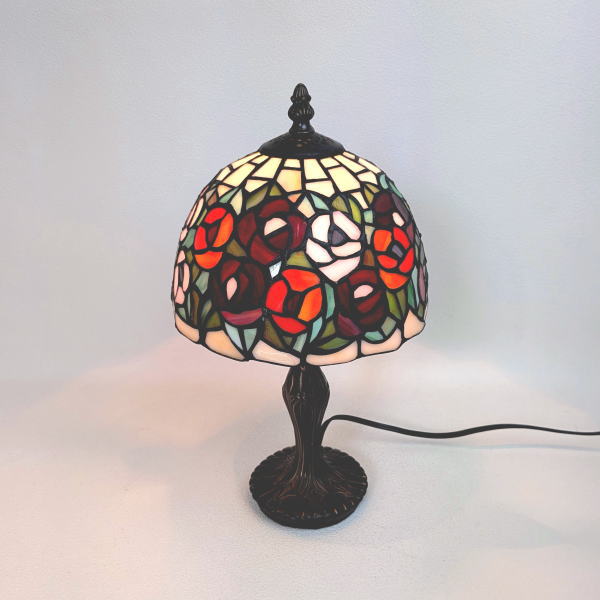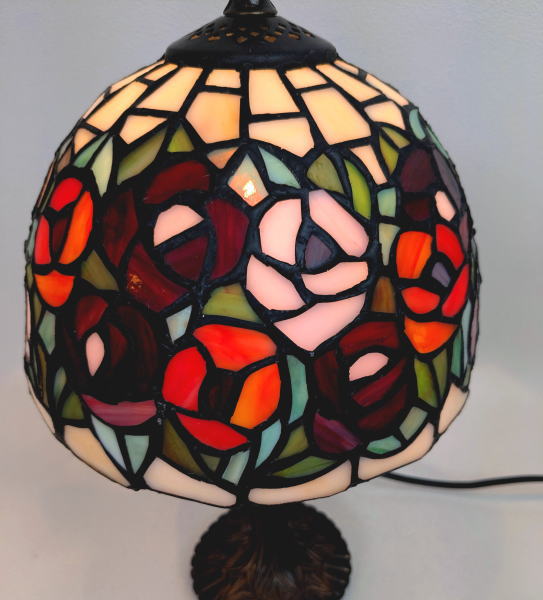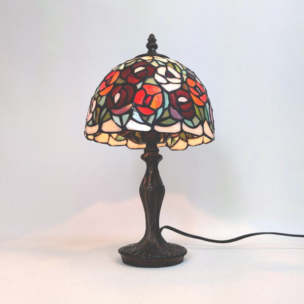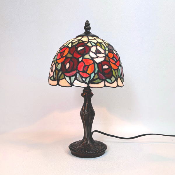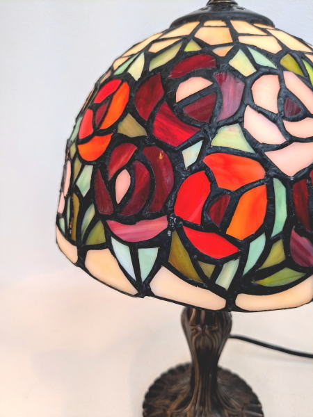 オレンジ系のバラをモチーフにした、上品で高級感あふれるステンドグラス製テーブルランプです。
