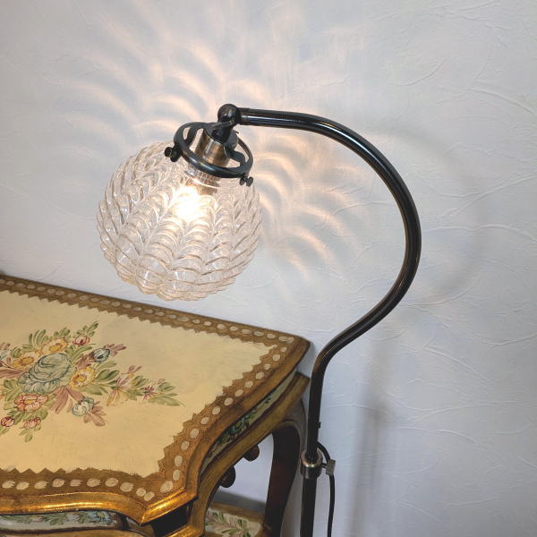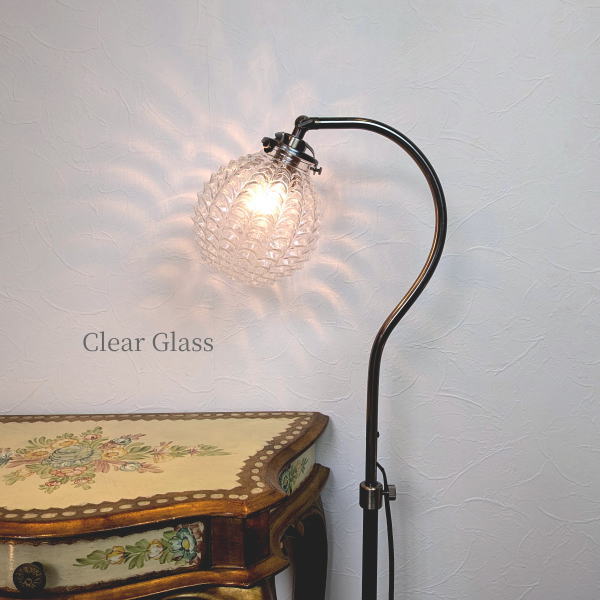 優雅なスワン型灯具に、繊細なカットガラスのシェードが光を美しく反射し、クラシカルで華やかな印象を与えるフロアライトです。